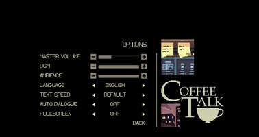 Coffee Talk Front-End Splash, Start, and Options Demo